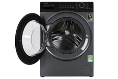 - Kiểu dáng: Máy giặt được thiết kế dạng cửa trước - lồng ngang, máy có màu đen kết hợp hài hòa với nội thất trong nhà.