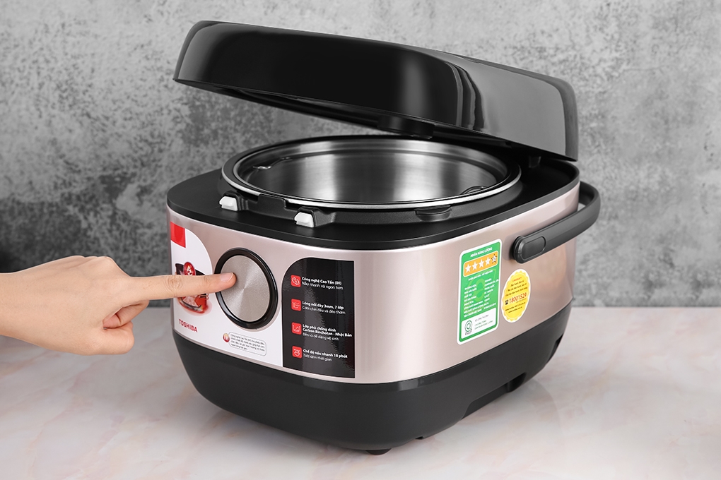 Có công suất 1300W cùng công nghệ nấu cao tần giúp làm nóng nồi cho cơm chín nhanh, đều.