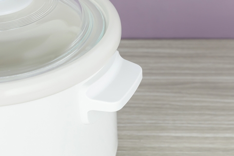 - Nồi nấu chậm Panasonic màu trắng trang nhã, thích hợp với nhiều không gian bếp, có tay cầm 2 bên để bạn dễ di chuyển nồi.