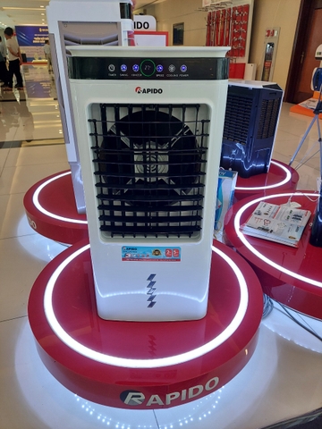 (Mặt trước và màn hình hiển thị của quạt điều hòa không khí Rapido Everest 6000D)