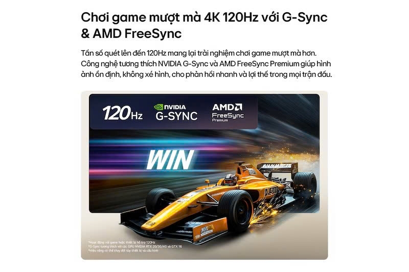 Ngoài ra, tivi còn hỗ trợ VRR 165 Hz, G-Sync, FreeSync, ALLM giúp chơi game mượt mà, không xé hình, độ trễ cực thấp.